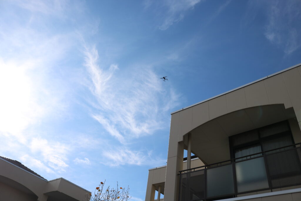普段あいの実上空を飛ぶことのないドローンを物珍し気に観察する子どもたちが多かったです。