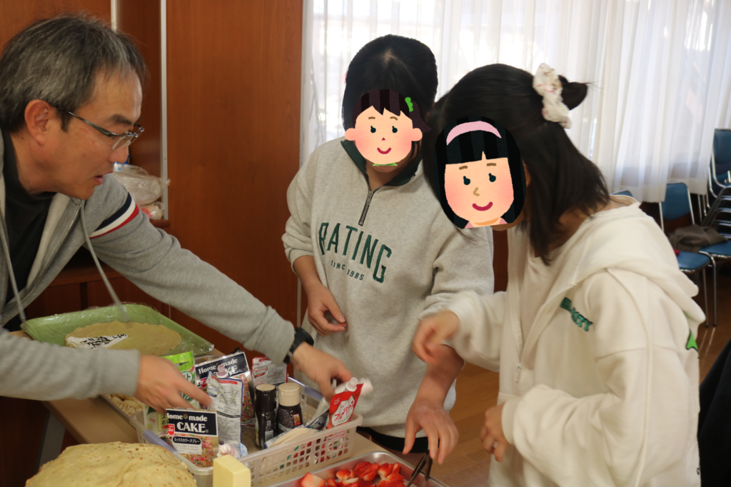 ラーメンだけではなくクレープ屋もありました。後援会の谷脇会長が子ども達にトッピングの説明をされていました。