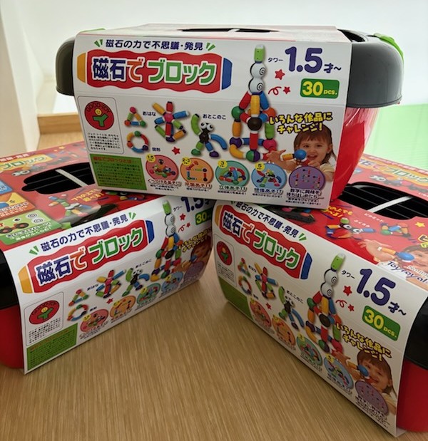 匿名様より アンパンマンお掃除ワイパー、ねじ回し玩具、磁石ブロック、リビングマットをいただきました。
